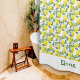 Patterned yellow lemon shower curtain. This charming shower curtain features a rustic and cute design, perfect for adding a touch of freshness to your bathroom. The botanical shower curtain showcases a delightful lemon pattern in vibrant yellow hues. It is a modern bathroom accessory that brings a cheerful and stylish element to your space. Ideal for those seeking to enhance their bathroom decor with a visually appealing and functional piece. This shower curtain combines practicality with aesthetic appeal, making it a wonderful addition to any bathroom.