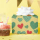 A green dominant design with red hearts and pattern filled hearts. This gift wrap is a perfect candidate for a Valentine's Day or love themed gift!