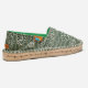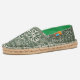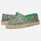 A seamless abstract pattern of beige flowers against the background decorated with horizontal stripes of light and dark green colors. Just a floral design to decorate any stylish goods or gifts. Good women, kids footwear. Do not forget to change the color or pattern of the inner liner. This pair of Ubuntu espadrilles - afridrilles is made for you with love by joint efforts of artists, designers, handcraftsmen, industrialists, engineers, and information technology guru, literally, from around the Globe. Let's keep our small planet Earth safe and healthy. By the way, "Ubuntu" means "I am, because you are" in Zulu. Have a sweet summer season with a new pair of stylish espadrilles in your corner of this wonderful world.