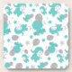 Pattern Of Blue Elephants, Cute Elephants, Stars Beverage Coaster
