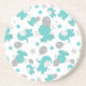 Pattern Of Blue Elephants, Cute Elephants, Stars Coaster