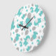 Pattern Of Blue Elephants, Cute Elephants, Stars Large Clock