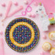 A seamless pattern of colorful cats and stars against the dark navy blue background. A beautiful feline pet-styled paper plate for your event. Customizable. You can change two template texts independently. If you want to SWITCH OFF/ON a round ring or both of them, or change something, do the following: click the "Personalize" or the "Edit Design" (as the case may be) button of the blue color to the right of the product image. It will transfer you to the "Designer Tool" window. Click the "Layers" menu to the left, choose "Oval", click the small eye icon. You can switch on/off everything, add more text, geometric elements, change the color of the background, change fonts, and do whatever you want. Just be creative and be happy!