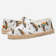 A seamless pattern of beautiful butterfly of black, red, yellow colors against the white background. A few smaller butterflies and black dots around. An elegant design to decorate any stylish goods or gifts. Good for women and kids. Do not forget to change the color or pattern of the inner liner. This pair of Ubuntu espadrilles - afridrilles is made for you with love by joint efforts of artists, designers, hand-craftsmen, industrialists, engineers, and information technology guru, literally, from around the Globe. Let's keep our small planet Earth safe and healthy. By the way, "Ubuntu" means "I am because you are" in Zulu. Have a sweet summer season with a new pair of stylish espadrilles in your corner of this wonderful world.