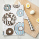 Pattern Of Donuts, Blue Donuts, Brown Donuts Kitchen Towel