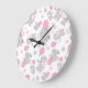 Pattern Of Elephants, Cute Elephants - Pink Gray Large Clock