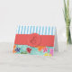 Pattern Of Flowers, Blue Stripes, Monogram Note Card