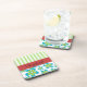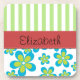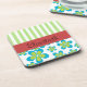 Pattern Of Flowers, Green Stripes, Your Name Beverage Coaster