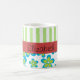 Pattern Of Flowers, Green Stripes, Your Name Coffee Mug