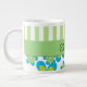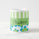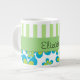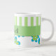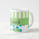 Pattern Of Flowers, Green Stripes, Your Name Large Coffee Mug