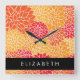 Pattern Of Flowers, Orange Dahlia, Your Name Square Wall Clock