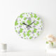 Pattern Of Green Elephants, Cute Elephants, Stars Large Clock