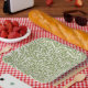 Pattern of green leafy branches on a white background, creating a dense, repeating design. The tone is fresh and nature-inspired.
