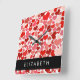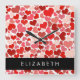 Pattern Of Hearts, Red Hearts, Love, Your Name Square Wall Clock