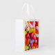 I own a lot of reusable grocery bags, but this one holds its box shape and simply stands up on its own even if there is nothing in it. Its stiffer than your regular reusable bag too, and the material is water resistant. I poured water on the exterior and it didn't penetrate inside to the other side. I'm buying a couple more. Wish I knew how durable these bags were or I would have purchased a few more with my initial order. I also like how it folds and buttons up when not in use, making it easy to put into a handbag or luggage. I haven't used this bag yet, as I purchased it for travel use, like when you're at the airport and need to small sturdy bag to place any airport purchases in, like food, souvenirs etc. I can tell you when you first see this bag, it looks very cheap, but after closer inspection of the material and the seams its a very sturdy reusable bag. I tested it out by putting some really heavy objects inside and I could not observe any stress to the bag at all. Another thing I like about it, is the fact the medium size that this is makes it easy to just carry it in your hand without the bottom of the bag scraping the ground, like most other bags do when you're short. That alone, deserves 5 stars. I just wish there were more colors to choose from! The PDX Airport Carpet printing looks just like the photo, and using this bag during travel might be a conversation piece when/if a native from Oregon happens to see it.