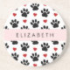 Pattern Of Paws, Black Paws, Red Hearts, Your Name Coaster