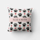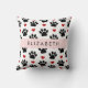 Pattern Of Paws, Black Paws, Red Hearts, Your Name Throw Pillow