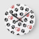 Pattern Of Paws, Black Paws, Red Paws, Hearts Round Clock