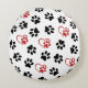 Pattern Of Paws, Black Paws, Red Paws, Hearts Round Pillow