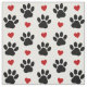 Pattern Of Paws, Dog Paws, Black Paws, Red Hearts Fabric