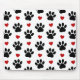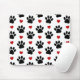 Pattern Of Paws, Dog Paws, Black Paws, Red Hearts Mouse Pad