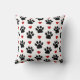 Pattern Of Paws, Dog Paws, Black Paws, Red Hearts Throw Pillow