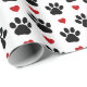 Pattern Of Paws, Dog Paws, Black Paws, Red Hearts Wrapping Paper