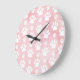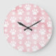Pattern Of Paws, White Paws, Watercolors, Pink Large Clock
