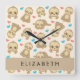 Pattern Of Sloths, Cute Sloths, Hearts, Your Name Square Wall Clock