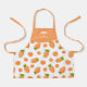 Great color and even though I ordered the kid size, it covers well enough to use during the holidays. I am not a big woman and prefer a shorter apron. I stand 5"6" and the length of the garment goes to mid-thigh. The tie straps fit well at my waist and even though there is no neck strap adjustment, the opening is plenty big enough. I am happy with the size and fit. I am sharing my apron with my 10 year old grandson, too! The color is vibrant and looks good, as shown on the website. The stitching looks strong and reinforced. Photographed is front side and back side of the apron, reinforced straps and coloring. My phone camera may not be the best at showing the details.