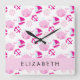 Pattern Of Whales, Pink Whales, Your Name Square Wall Clock