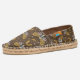 A seamless pattern of a butterfly of yellow, beige, gray colors. The butterfly tows a crescent and a yellow rainbow. Gray stars and white dots around. The brown color background. An elegant design to decorate any stylish goods or gifts. Good for women and kids. Do not forget to change the color or pattern of the inner liner. This pair of Ubuntu espadrilles - afridrilles is made for you with love by joint efforts of artists, designers, hand-craftsmen, industrialists, engineers, and information technology guru, literally, from around the Globe. Let's keep our small planet Earth safe and healthy. By the way, "Ubuntu" means "I am because you are" in Zulu. Have a sweet summer season with a new pair of stylish espadrilles in your corner of this wonderful world.