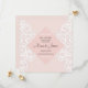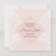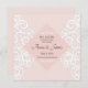 Wedding invitation with white pattern ornament on pink your wedding details with a white border of frame in soft pink. Personalize the card with your information in grey lettering.