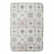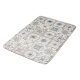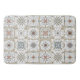 Bath mat with a series of nine (9) different Spanish-style tiles in neutral colored, mosaic pattern.