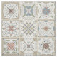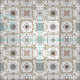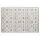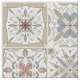 Fabric with a series of nine (9) different Spanish-style tiles in neutral colored, mosaic pattern.