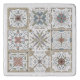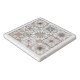 Trivet with a series of nine (9) different Spanish-style tiles in neutral colored, mosaic pattern.