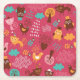 Pattern with cute birds and cats square paper coaster