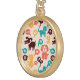 Pattern With Funny Cats And Dogs Gold Plated Necklace