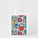 Shopping Bag with Colourful pickleballs and black circles on white background. Perfect as a gift for a fashionable pickleball player.