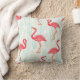 Pattern with pink flamingo ornaments on a backgrou throw pillow