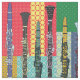 Patterned clarinets against patterned blocks is a unique gift design for woodwind musicians, music teachers and students in concert and marching band.