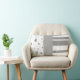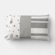 This accent pillow has an abstract pattern of dots and stripes in a soft gray and white design for home decor.