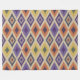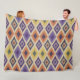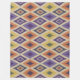 This design features a bold and colorful geometric pattern, inspired by traditional tribal motifs. It showcases repeating diamond shapes in vibrant hues of purple, orange, green, and yellow, with intricate zigzag details at the center of each diamond. The overall look has a textured, woven appearance, giving it a dynamic and tactile quality. The contrast between the warm and cool tones creates a visually striking effect, perfect for a cozy fleece blanket. The pattern has a rhythmic flow, making it both eye-catching and soothing.