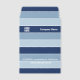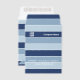 Patttern of three tone blue stripes and logo envelope mailers that feature bold horizontal lines bordered by white accents and your logo.