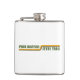 Well made flask, a little better than I had expected. Flask came in clear plastic box which gave it a nice presentation when I took it out of the zazzle packaging. Image is not printed on flask but on sticker. Don't know how this will hold up I haven't used it yet. This would make a Great gift! I plan to purchase more for friends! Cheers. I thought a little brighter than computer. Very crisp, writing wasn't
