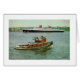 A dramatic note card by the award-winning artist Paul McGehee. "Hudson River Departure" shows the famous liner S.S. "United States" (known as the "Big Ship") as she departs her United States Lines pier in New York's Hudson River for a transatlantic run in 1963. The "United States" was THE liner to be on, and be seen on...luminaries from world leaders to Hollywood royalty (Frank Sinatra, Marilyn Monroe, Bob Hope, to name a few) were regular passengers on her runs between New York harbor and Europe. To this day, for her class of vessel, she holds the transatlantic speed record, the "Blue Riband," set in 1952. Each card comes with envelope.