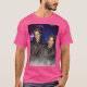 My 11 yo wore adult XL (5’7” 165#). The 8yo is small framed. She wore adult small and tied it in the back. Grandma wore adult large with long sleeve shirt underneath. Tall girl adult medium. Dark haired male adult large. Good quality dark Heather gray, Gildan brand shirt. -it was next up from basic choice and cost about $20 per shirt. Not too thick or thin. Washed and dried well, no major shrinkage. Not see-through. Can wear a bra under it fine. Screen print is just as shown and well done, front and back.