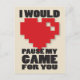 Pause My Game Gamer Nerdy Valentines Post Card - No need to reboot your love life as we have the ultimate Valentines day card just perfect for gamers. Featuring an illustration of a pixelated heart exactly like those you find in computer games with the message: "I would pause my game for you!" This is the ideal Valentines card for your geek better half. You'll definitely receive a level up with the special gamer in your life once you give this awesome card.