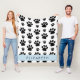 Paw Pattern, Dog Paws, Black and White, Your Name Fleece Blanket