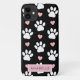 Paw Pattern, White Paws, Pink Hearts, Your Name Case-Mate iPhone Case